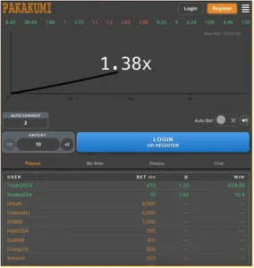 The Pakakumi game revolves around one simple but thrilling rule — cash out before the crash. A rocket (or curve) rises with a multiplying coefficient. Players place their bets before the round starts, and as the multiplier increases, so do potential winnings. But beware — if the line “bursts” before you cash out, your stake is lost.